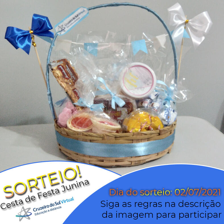 Ações realizadas no mês de Junho/Julho com a temática da festa junina, o polo foi enfeitado e realizado um sorteio online de uma cesta com vários doces.